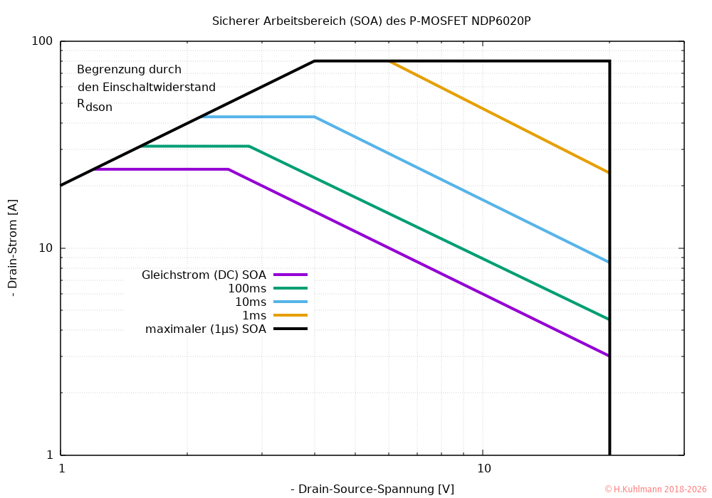 - Das Gate des NDP6020P ist nicht gegen höhere Spannungen geschützt.