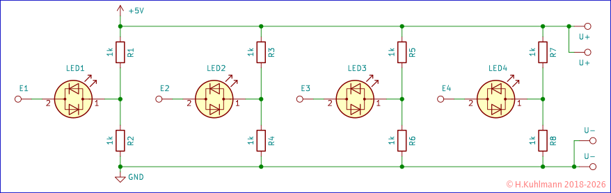 Die Widerstände und LEDs sind schematisch dargestellt.