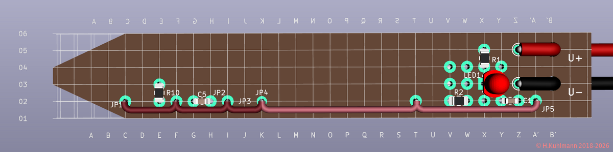 LED2 mit GND (C,02)-(C,03) auf der Unterseite verbinden.