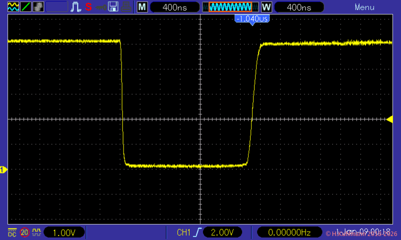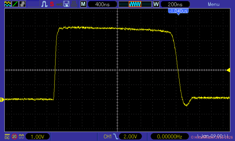 Der Impuls-Injektor erzeugt beim Betätigen der Taste einen einzelnen HIGH-Impuls und beim Loslassen einen einzelnen LOW-Impuls mit einer Dauer von 1,5µs bis 2µs.