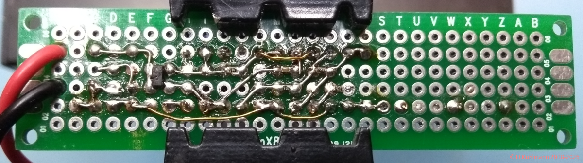 Dieses Projekt wird auf einer Lochrasterplatine mit durchkontaktierten Lötpunkten aufgebaut.