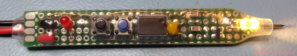Logiktester mit Impulserkennung, der auch durch einen LiPo-Akku ergänzt werden kann: Logiktester mit Impulserkennung und Akku.