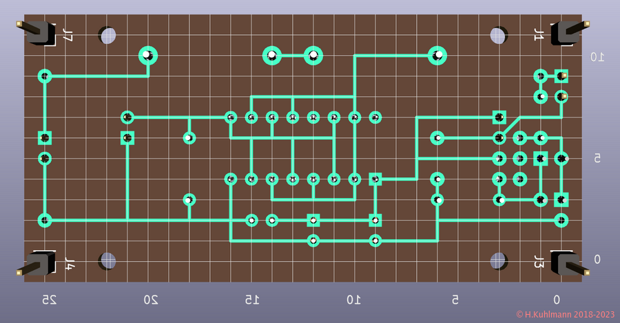 Dieses Projekt wird auf einer Lochrasterplatine mit durchkontaktierten Lötpunkten aufgebaut.