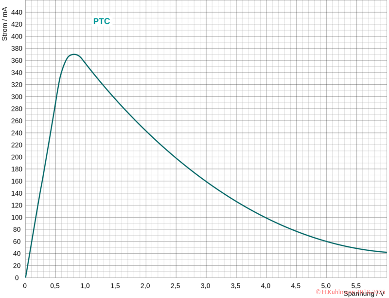 Die Strom-Spannungs-Kennlinie von PTC-Widerständen ist in PTC-Widerstand beschrieben.