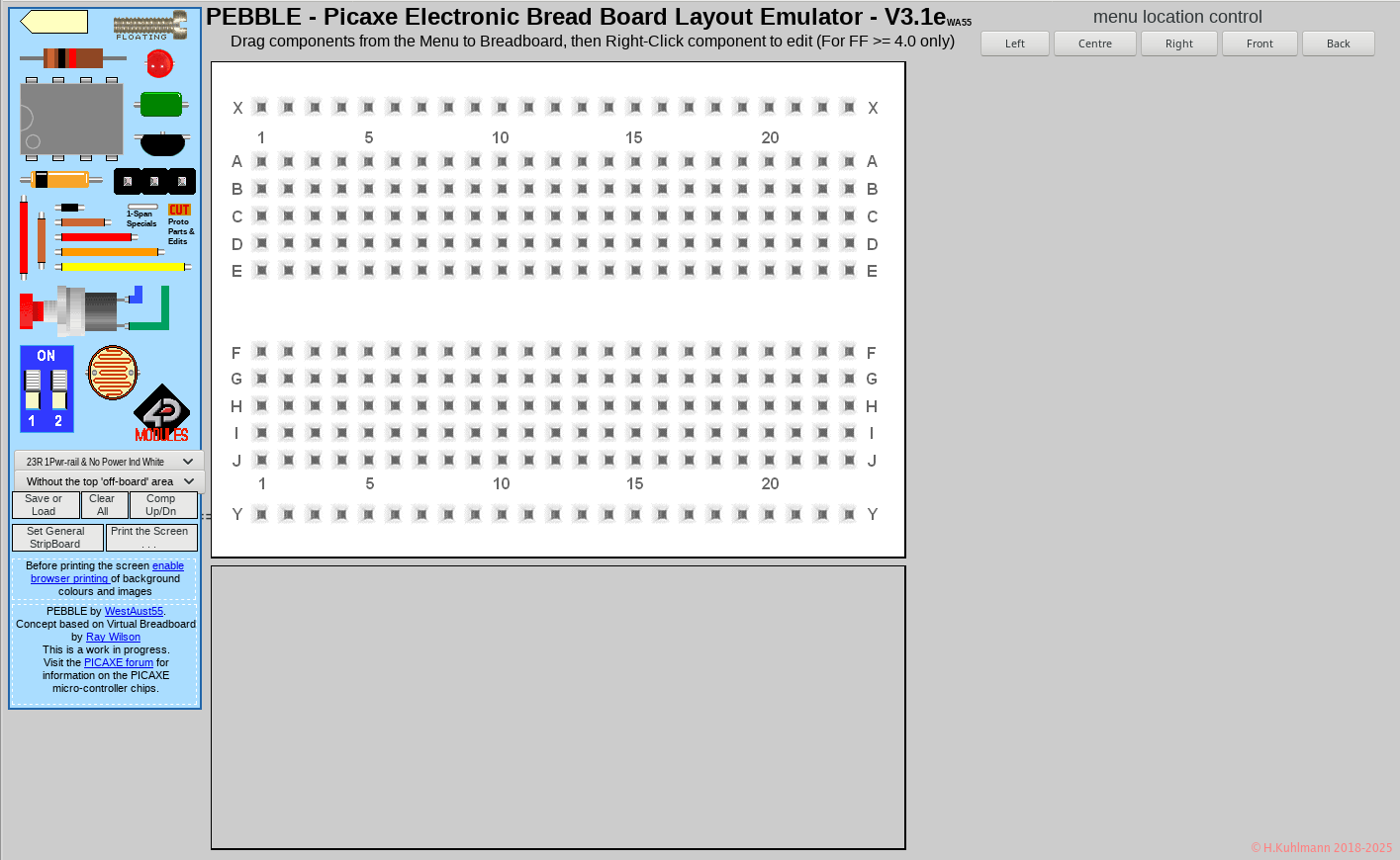 Pebble ist ein virtuelles Steckboard, das im Browser läuft. Es wird von WestAust55 gepflegt.